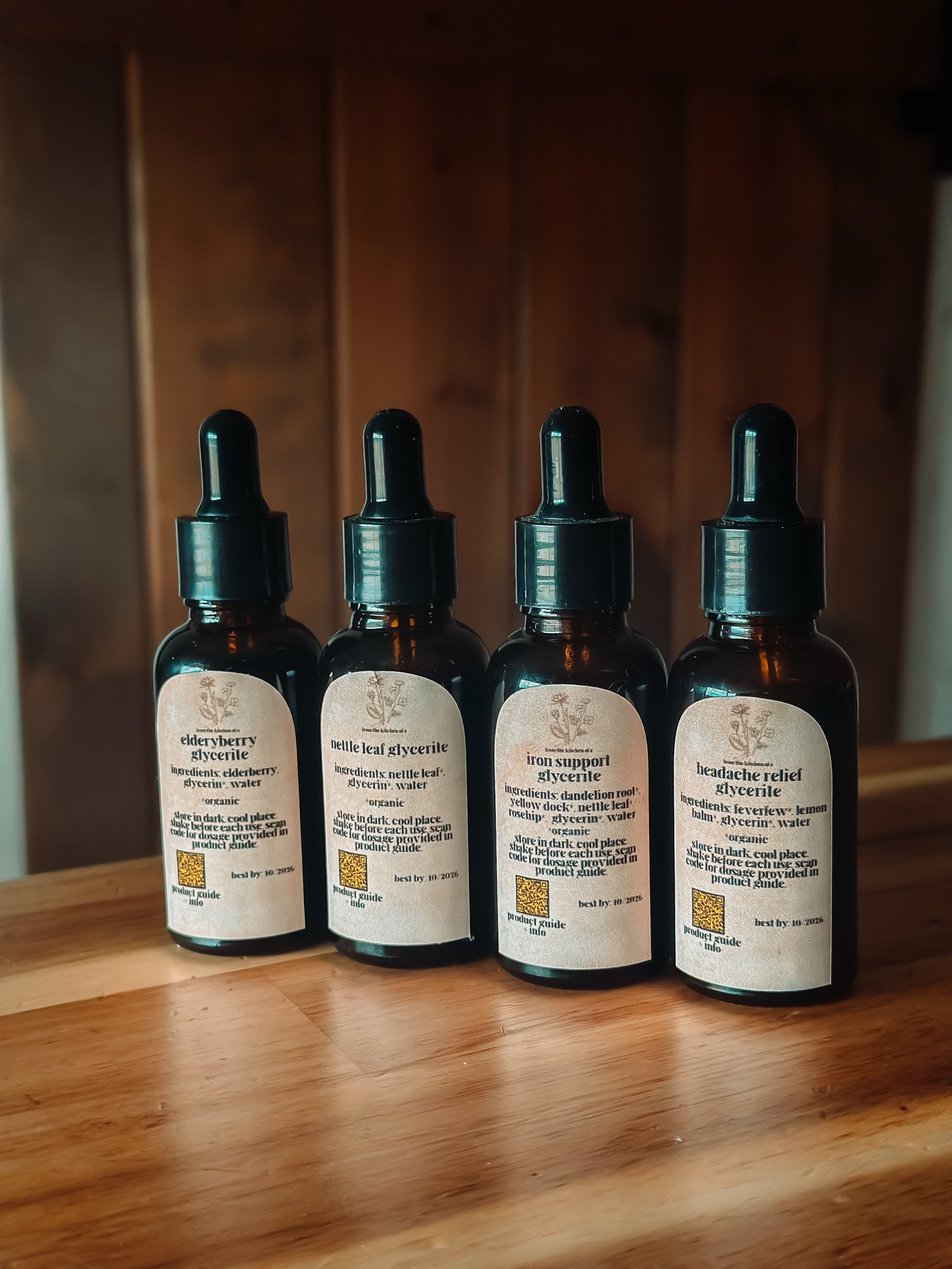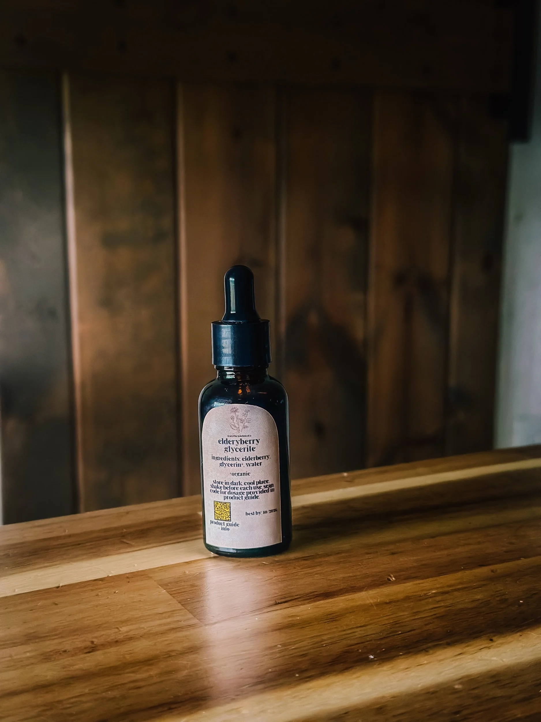 crafted in small batches and made with intention, this elderberry glycerite is designed to support your body through seasonal shifts and everyday immune care.